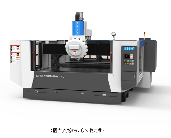1、SDSK2515V5-BT40機型是專門為客戶量身定做的輕型龍門加工中心;定梁式結(jié)構(gòu);運動方式為Y軸工作臺前后移動,X軸左右移動,Z軸上下移動。