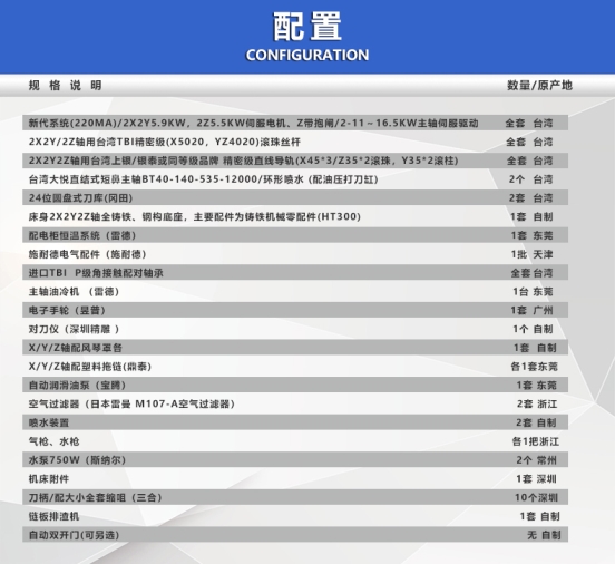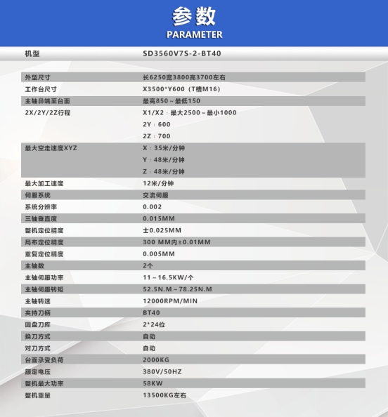 天軌式雙頭雙通道加工中心詳細參數(shù)